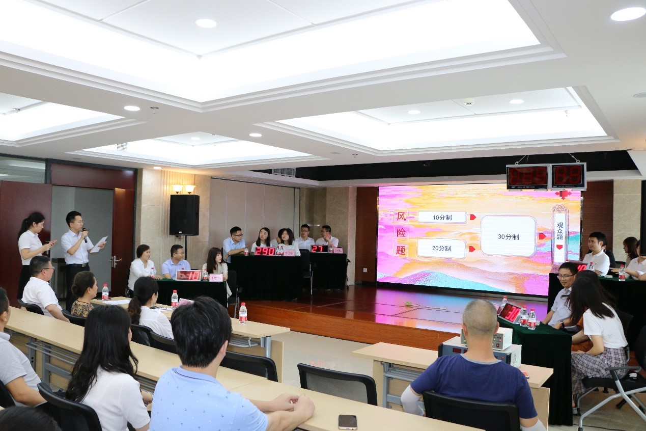 本次競賽由銀科擔保公司、國興租賃公司、國融典當公司、涪陵興農(nóng)擔保公司的黨員、入黨積極分子、團員組成的6支代表隊參賽。競賽共分“必答題”、“搶答題”、“風險題”3個環(huán)節(jié),題目涵蓋了《黨章》、《中國共產(chǎn)黨紀律處分條例》、時事政治、金融、法律、歷史等知識內(nèi)容。比賽過程中參賽隊員準備充分,沉著答題,活動氣氛緊張而活躍,高潮迭起,展現(xiàn)出全體黨員的先鋒模范帶頭作用和銀科黨支部學(xué)習型隊伍的風采。