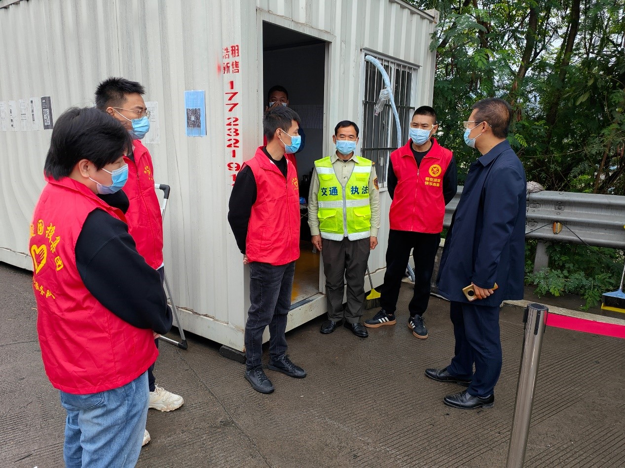 10月9日,江東街道黨工委書記夏嘉川及銀科擔保公司總經理付習桓分別前往“涪陵東”高速路口收費站,對參加“黨員先鋒隊和青年突擊隊參與交通卡點疫情防控服務工作”的銀科擔保公司志愿者進行了慰問,感謝志愿者們無私的辛勤付出。強調了首先要堅持做好疫情防控檢查工作,其次提醒大家要做好個人防護。